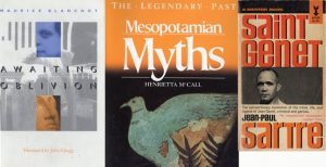 Again, the books were found lying together after a year of debauchery; the first bookmark or placeholder was followed. The sometimes Orphic nature of the concatenations comes from chance placement. There are times when the whole library becomes a visceral writhing of energies, sedimentations, cautious circumspections and ebullient demands, patent nonsense mied with the darkest but profound obscurities –and me stymied in differentiating the two, that it seems as if a Lovecraftian door will –or perhaps already has done so — open any second and draw them all in with a deep eldritch inhalation combined with the sound of snapping shut.