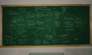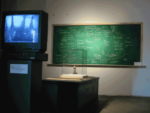 (One could also make a point that techné is coterminous with reclamation, gathering, collecting and that chasmatically indigenous to the density of collapse and catastrophe is redemption. That density finds its aufhebung, relief, or grace in Christian kenosis. The notion of kenosis, or self-emptying, allies with both Avataric and Lacanian suturing / point de capiton, a point that is extruded by and makes oblique the forces which ‘quilted’ it into existencethe suturing of the Real and the Symbolic similarly forms a visible ‘ridge’ which simultaneous indicates and obscures its processes of creation. This is all too similar to the Catholic Church’s dictum that “According to Catholic theology, the abasement of the Word consists in the assumption of humanity and the simultaneous occultation of the Divinity.” [This also very close to the Heideggerean assumption of both the uncanny and the divine as “the Being that shines into every thing ordinary” (Parmenides, pp 101 and 115)] There is no getting to the ‘other side’ of the process because human reality is stitched together in such a way that ‘both’ sides are always present, but the visibility of one always obscures the other. Compare with kenosis, for example in Philippians 2:6 : “Who being in the form of God, thought it not robbery to be equal with God: But emptied [ekenosen] himself, taking the form of a servant, being made in the likeness of men, and in habit found as man.” The notion of kenosis also overlaps certain eastern spiritual concepts as well as an emphasis on concepts such as the impersonal, the inhuman, and the extreme in Lyotard, Agamben, and Benjamin, among many other modernist philosophers.)