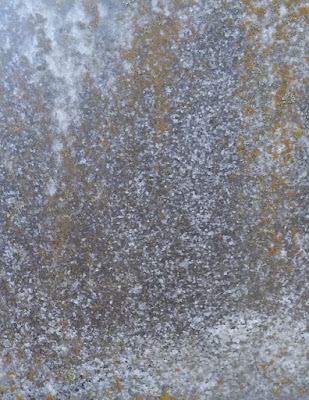 (Back of a tombstone, back like the cover of an old book. One (this one) can see faces, stars, constellations, dark matter in the pits, wear, lichens, cryptic messages from its environments, perhaps betokened to the other side frontage.)