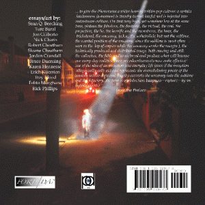 ————–Perforations 33 gathers Sean Q. Beeching’s wry meditation on lost-and-found camouflage; an entire subsection whose elements all ponder drones in their every aspect; and the irreal fictions (fictions?) of Nicholas Charis, among other unexpected (save in its own pages) literary fauna.