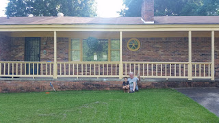 Pa ‘n’ the boy taking a break from thinking about stuff. front of the house is to change shortly–big re-do happening.