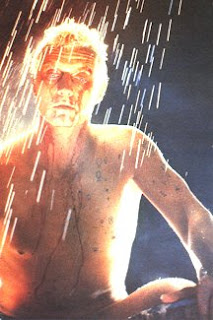 This photo is from material left out of Bladerunner, the Ridley Scott movie. Here we see the replicant Roy Batty. Of most interest are the tattoos on the upper left side side of his chest, looking like circular formations, quixotic, indecipherable really, designs which we can guess to relate to his short lived career as a spaceship pilot. Given the rest of the movies thematics of remembrance, false memory, questions of identity, it would be natural to relate the marks to identity somehow. Knowing that the replicants were basically short lived prisoners, conducting the work of a space faring civilization in conditions where ‘normal’ humans could not or did not choose to work may help.