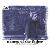 names-of-the-father (2006). “The reign of the Name-of-the-Father,” says Jacques-Alain Miller, “corresponds in psychoanalysis to the epoch of Freud. If Lacan extracted it, brought it to light, formalized it, it is not in order to adhere to it, to develop this Name-of-the-Father, but to put an end to it.” Lacan did this, put an end to the Name, when he introduced the notion of names-of-the-father (the crucial details not to be missed here are the use of the plural and the lack of capital letters.) Whereas in the Freudian epoch subjects might still believe in the reality or truth of the Other, in the Name-of-the-Father — in the Lacanian epoch the Other no longer exists as such.